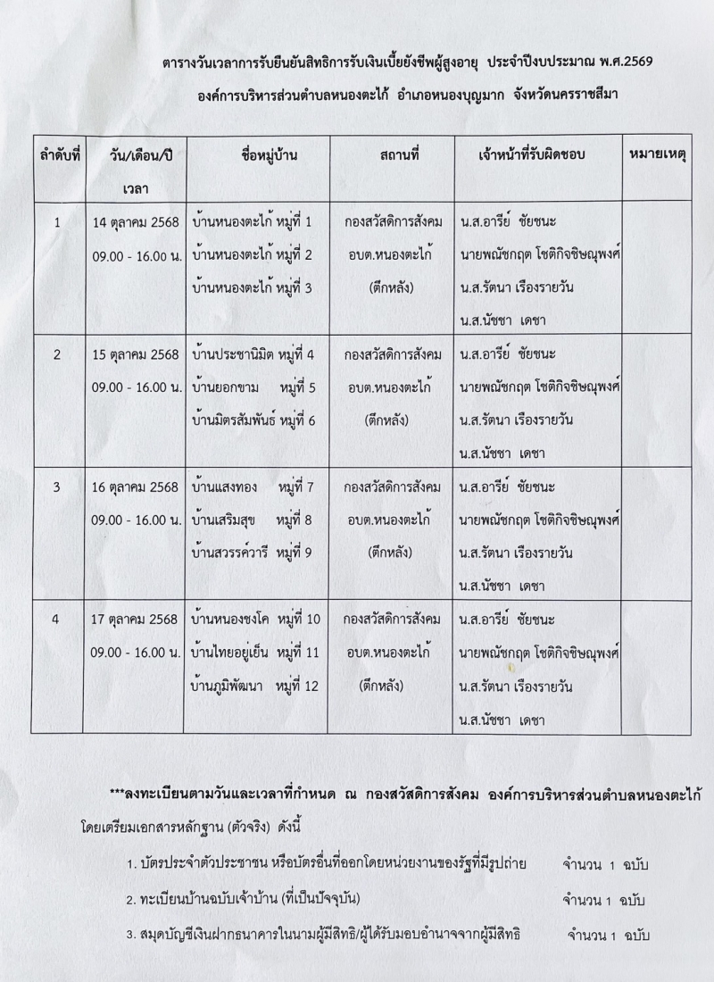 📢📢ประชาสัมพันธ์ การยืนยันสิทธิ์ (ลงทะเบียนรับเบี้ยยังชีพผู้สูงอายุ) เพื่อขอรับเงินเบี้ยยังชีพผู้สูงอายุขององค์การบริหารส่วนตำบลหนองตะไก้ ประจำปีงบประมาณ พ.ศ. 2569