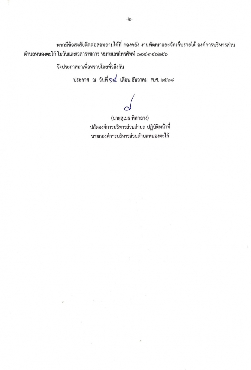 #ภาษีที่ดินและสิ่งปลูกสร้าง #ขยายระยะเวลา #อบตหนองตะไก้