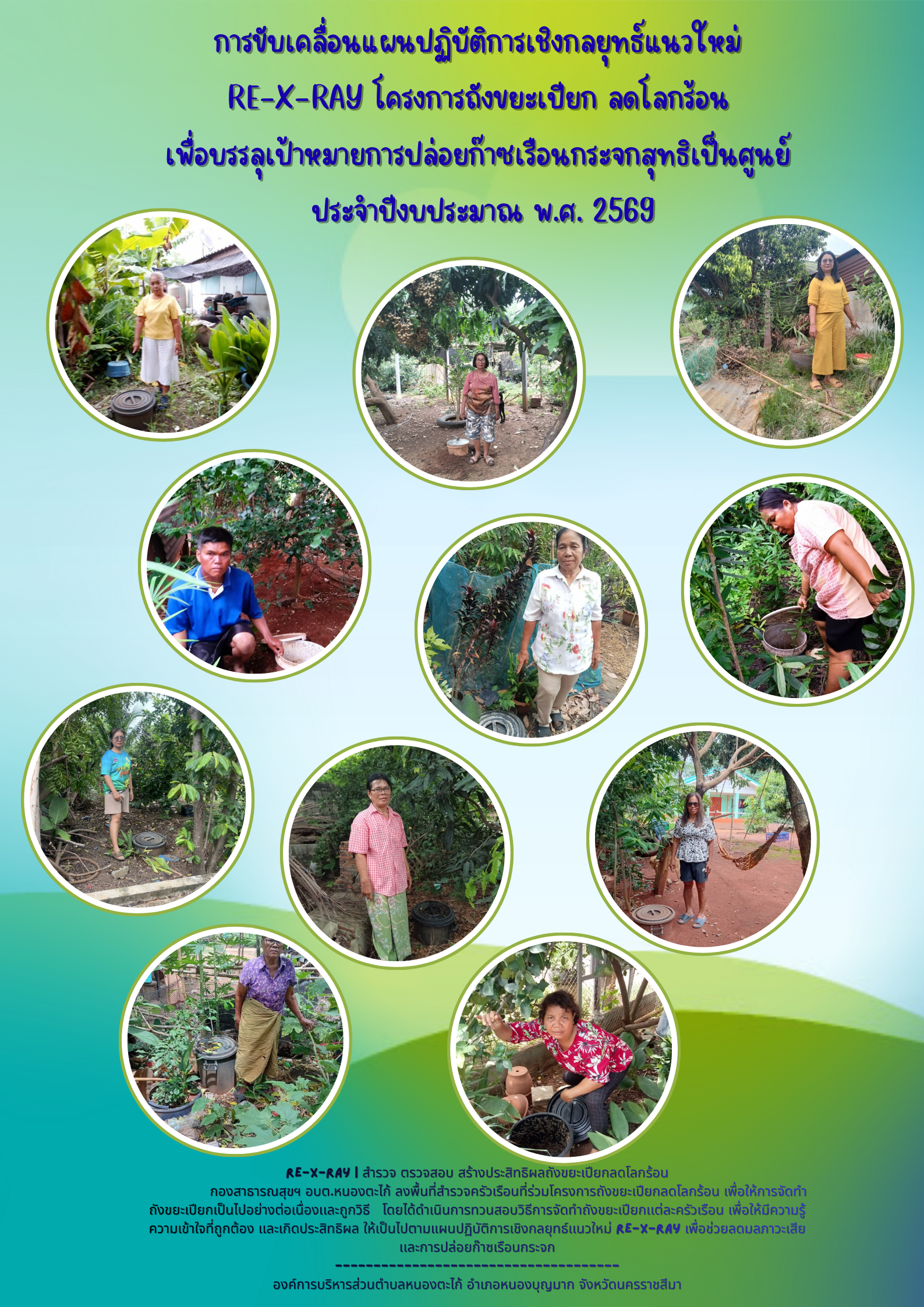 RE-X-RAY | สำรวจ ตรวจสอบ สร้างประสิทธิผลถังขยะเปียกลดโลกร้อน กองสาธารณสุขฯ อบต.หนองตะไก้ ลงพื้นที่สำรวจครัวเรือนที่ร่วมโครงการถังขยะเปียกลดโลกร้อน เพื่อให้การจัดทำถังขยะเปียกเป็นไปอย่างต่อเนื่องเเละถูกวิธี โดยได้ดำเนินการทวนสอบวิธีการจัดทำถังขยะเปียกเเต่ละครัวเรือน เพื่อให้มีความรู้ความเข้าใจที่ถูกต้อง เเละเกิดประสิทธิผล ให้เป็นไปตามแผนปฏิบัติการเชิงกลยุทธ์เเนวใหม่ RE-X-RAY เพื่อช่วยลดมลภาวะเสีย เเละการปล่อยก๊าซเรือนกระจก