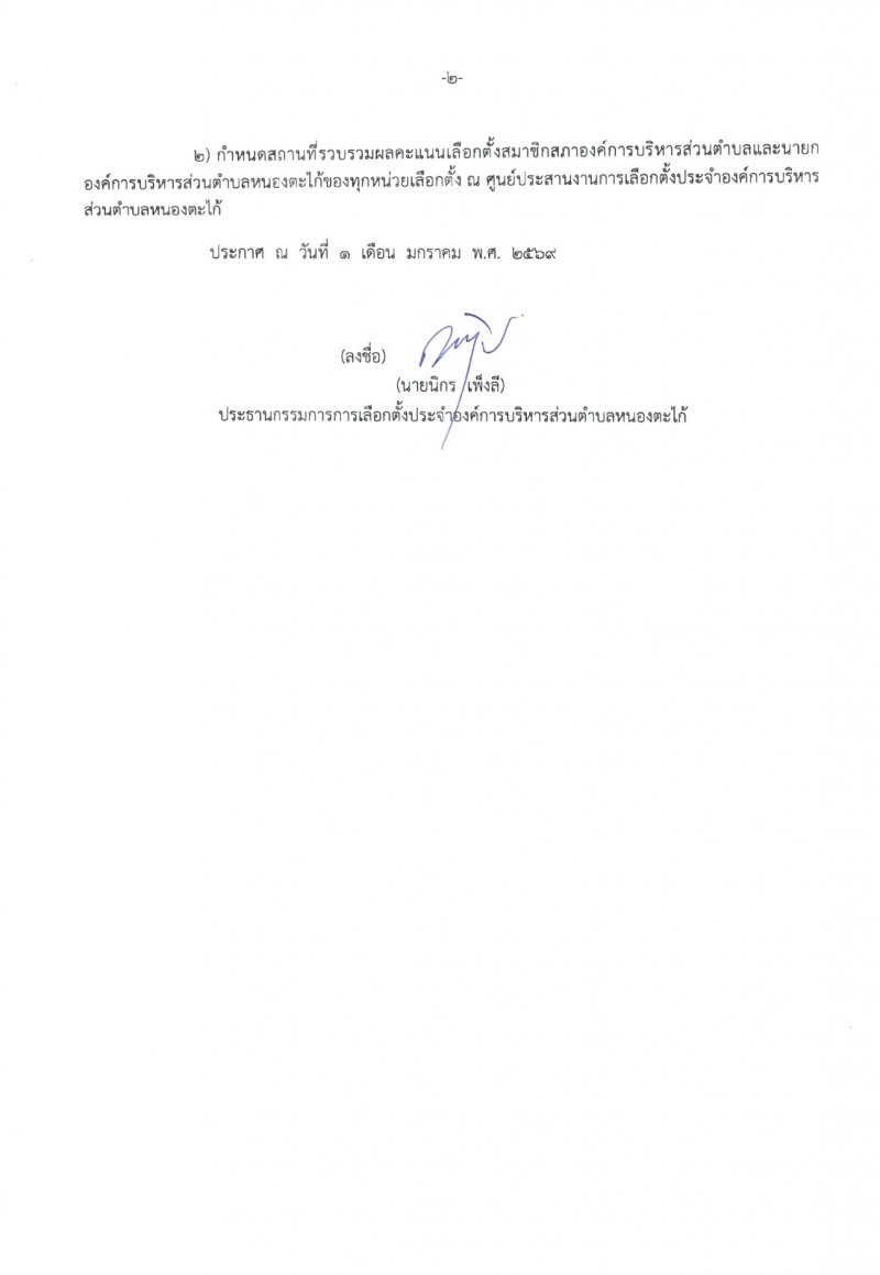 ประกาศให้มีการเลือกตั้งสมาชิกสภาองค์การบริหารส่วนตำบลและนายกองค์การบริหารส่วนตำบลหนองตะไก้