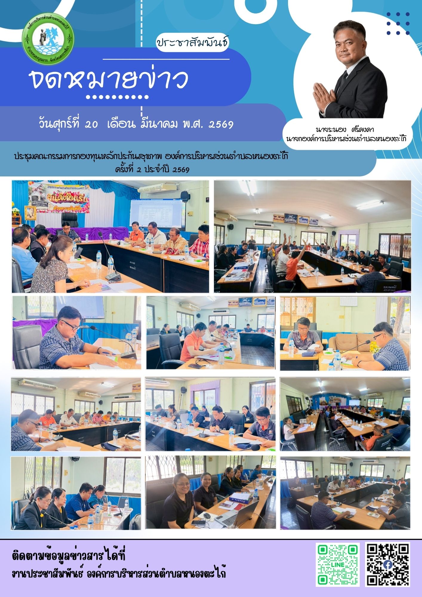 เวลา 09.30 น. กองทุนหลักประกันสุขภาพฯ ได้จัดประชุมคณะกรรมการกองทุนหลักประกันสุขภาพองค์การบริหารส่วนตำบลหนองตะไก้ ครั้งที่ 2/2569 เพื่อพิจารณาเรื่องดังนี้