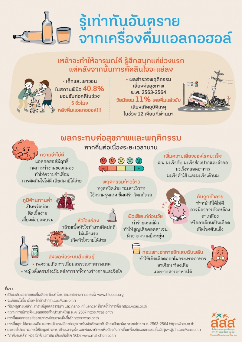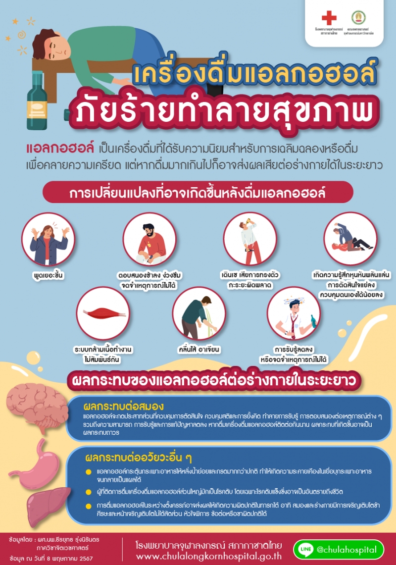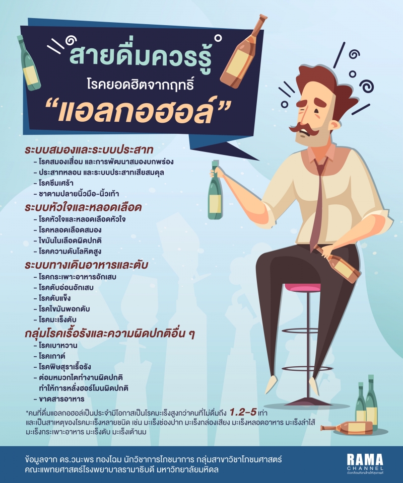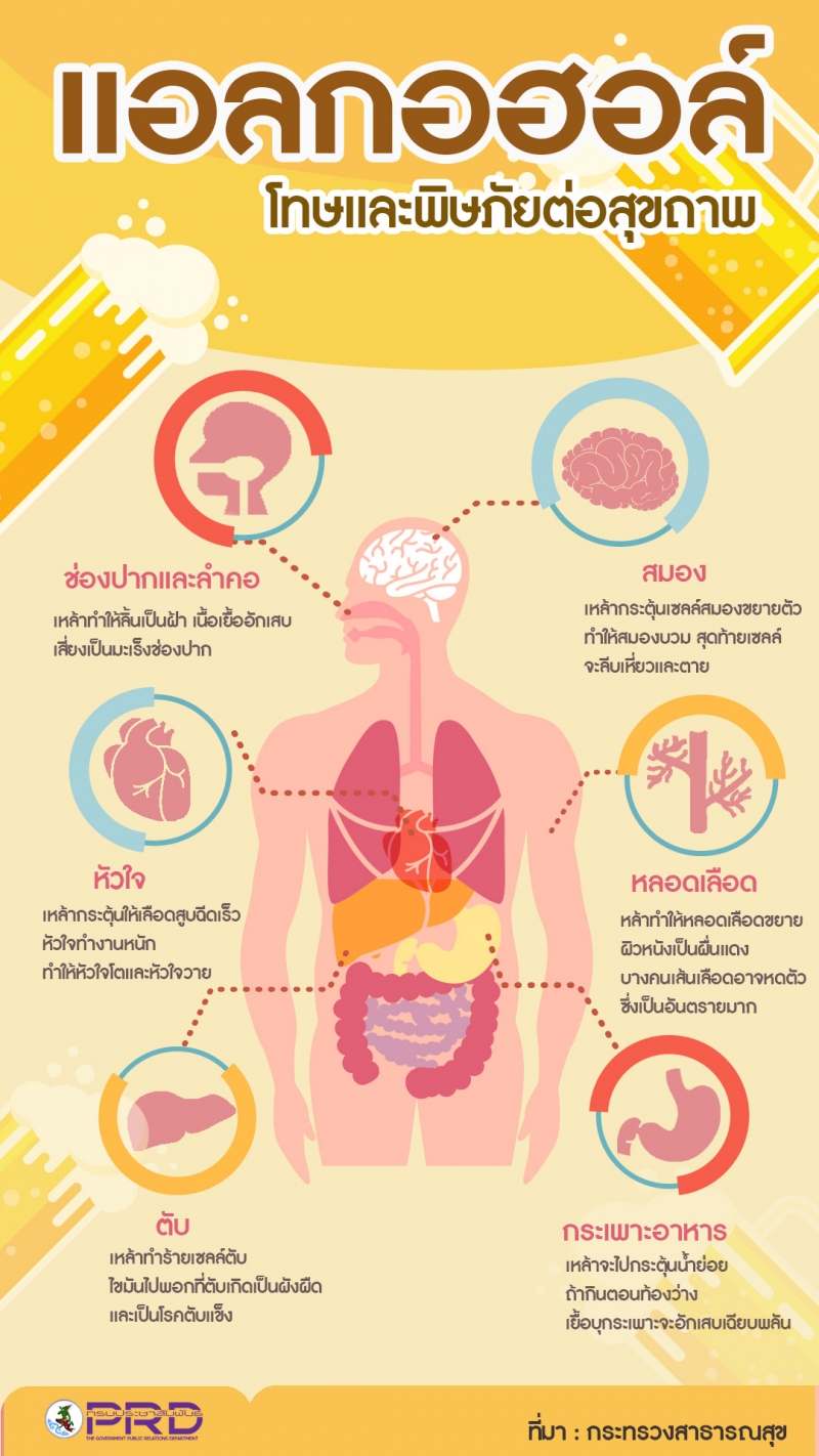 แอลกอฮอล์มีทั้งข้อดีและข้อเสีย โดยหลักๆ แล้วการดื่มในปริมาณที่พอเหมาะ (ไม่เกิน 1-2 แก้ว/วัน) อาจช่วยลดความเสี่ยงโรคหัวใจและเบาหวานได้บ้าง แต่โทษมีมากกว่ามาก ได้แก่ โรคตับแข็ง มะเร็ง ความดันสูง สมองเสื่อม รวมถึงส่งผลกระทบต่อสังคม เช่น อุบัติเหตุ ปัญหาครอบครัว และรายจ่ายที่สูง