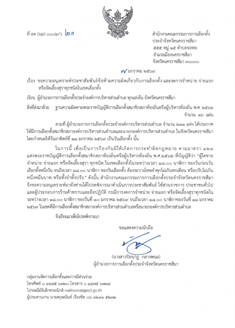 ระหว่างเวลา 18.00 น. ของวันที่ 10 ม.ค. 69 ถึงเวลา 18.00 น. ของวันที่ 11 ม.ค. 69 (เลือกตั้ง อบต.)