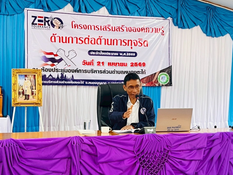 นายระนอง ศรีคงคา นายกองค์การบริหารส่วนหนองตะไก้ ได้มอบหมายให้ นายรัฐพล พิกุลทอง รองนายกองค์การบริหารส่วนหนองตะไก้ เปิดโครงการเสริมสร้างองค์ความรู้ด้านการต่อต้านทุจริต". ให้กับคณะผู้บริหาร สมาชิกสภา ข้านราชการ ลูกจ้างประจำและพนักงานจ้าง องค์การบริหารส่วนตำบลหนองตะไก้ โดยมี นายศานต์ชาติ ตึดสันโดษ นักสืบสวนสอบสวนชำนาญการพิเศษ ผู้อำนวยการกลุ่มงานปราบปรามการทุจริตในภาครัฐ 2 จากสำนักงานป้องกันและปราบปรามการทุจริตในภาครัฐ เขต 3 (ปปท. เขต3) เป็นวิทยากรบรรยายให้ความรู้ด้านการต่อต้านการทุจริต ให้กับคณะผู้บริหาร สมาชิกสภา อบต.และพนักงาน อบต.ได้รับฟังเพื่อนำความรู้ไปปฏิบีติใช้กับการทำงานต่อไป